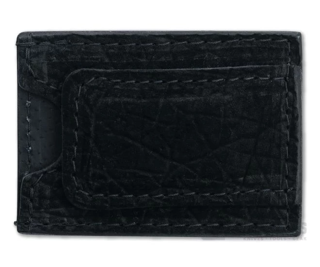 Handcrafted with time and attention to detail using traditional techniques passed down over centuries, Yoder Leather wallets are heirloom quality. This wallet is black tanned Hippopotamus leather with black leather lining, heavy-duty nylon thread and magnetic money clip.