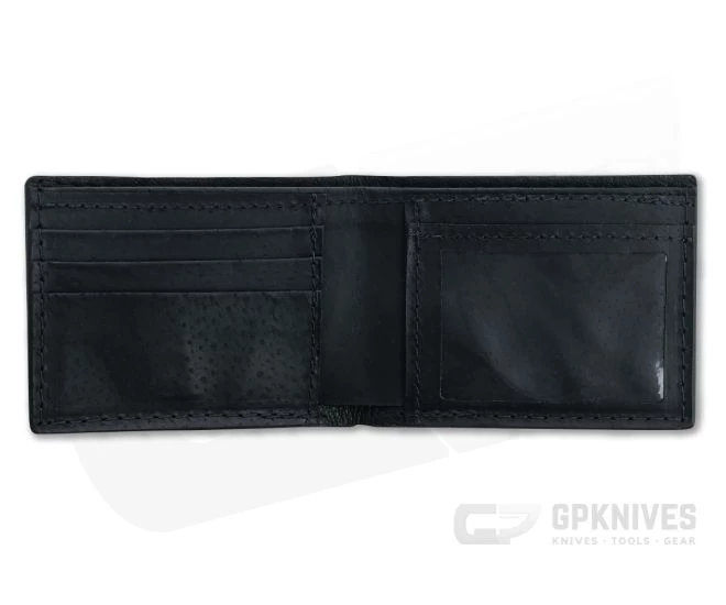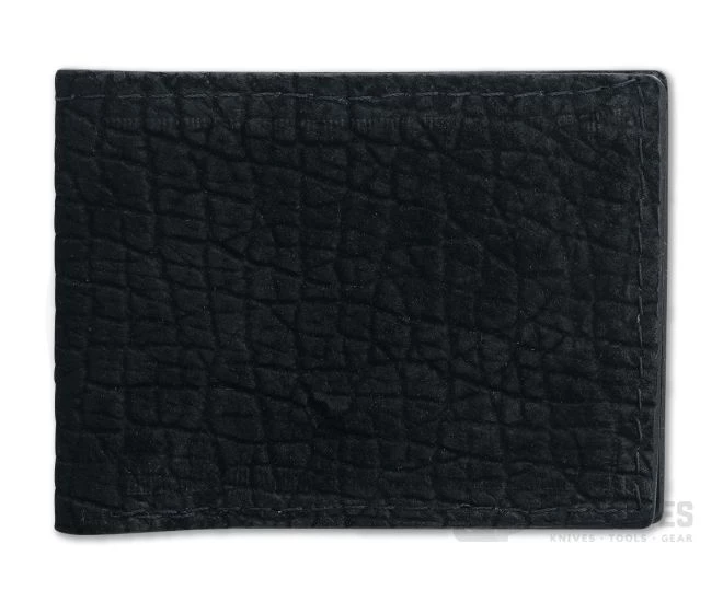 Handcrafted with time and attention to detail using traditional techniques passed down over centuries, Yoder Leather wallets are heirloom quality. This is a regular size bi-fold wallet with transparent ID window, black tanned Hippopotamus leather exterior, black leather lining and heavy-duty nylon thread.