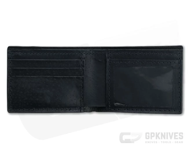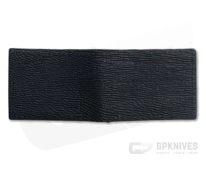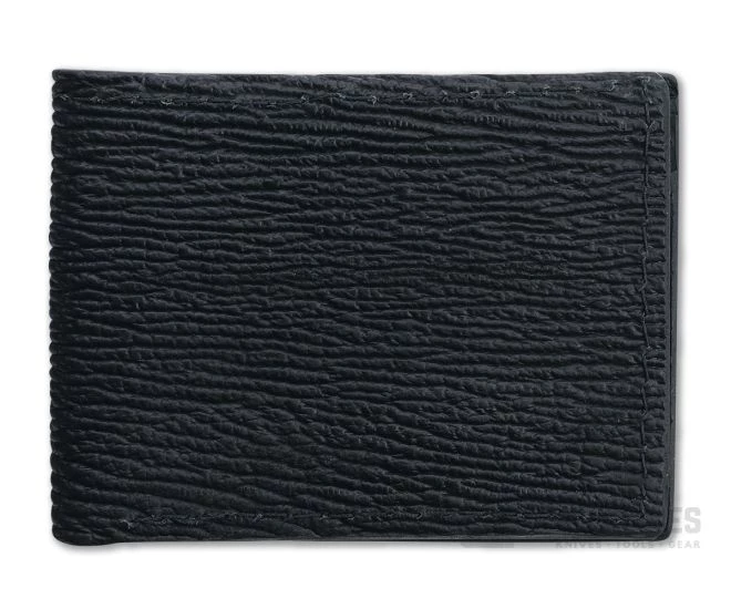 Handcrafted with time and attention to detail using traditional techniques passed down over centuries, Yoder Leather wallets are heirloom quality. This is a regular size bi-fold wallet with transparent ID window, black tanned shark skin leather exterior, black leather lining and heavy-duty nylon thread.