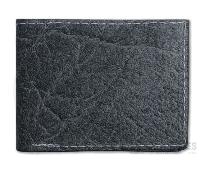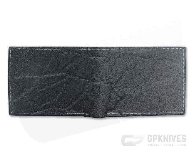 Handcrafted with time and attention to detail using traditional techniques passed down over centuries, Yoder Leather wallets are heirloom quality. This is a regular size bi-fold wallet with transparent ID window, gray tanned African Elephant leather exterior, black leather lining and heavy-duty nylon thread.