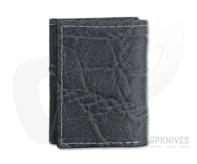 Handcrafted with time and attention to detail using traditional techniques passed down over centuries, Yoder Leather wallets are heirloom quality. This wallet is a classic trifold with gray tanned African Elephant leather exterior, black leather lining and heavy-duty nylon thread.