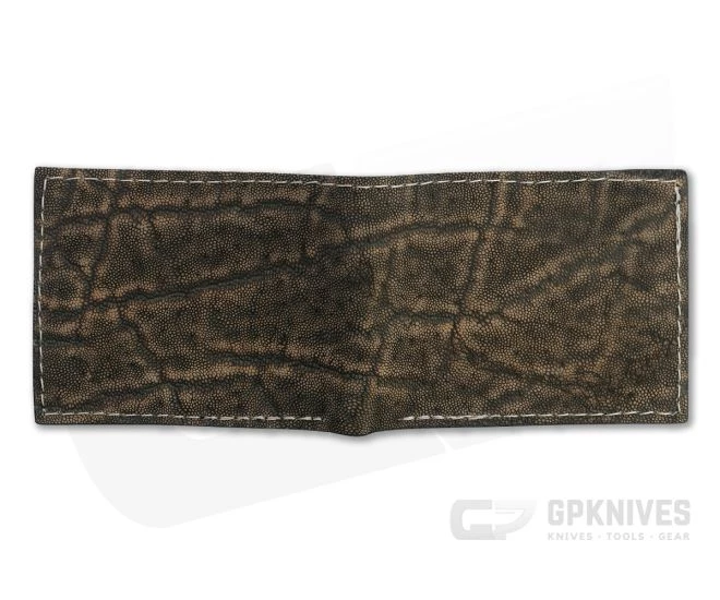 Handcrafted with time and attention to detail using traditional techniques passed down over centuries, Yoder Leather wallets are heirloom quality. This is a regular size bi-fold wallet with transparent ID window, Treebark pattern tanned African Elephant leather exterior, black leather lining and heavy-duty nylon thread.