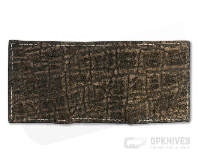 Handcrafted with time and attention to detail using traditional techniques passed down over centuries, Yoder Leather wallets are heirloom quality. This wallet is a classic trifold with Treebark pattern tanned African Elephant leather exterior, black leather lining and heavy-duty nylon thread.