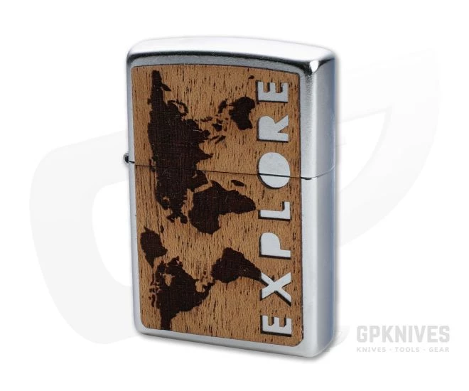Zippo, in partnership with Woodchuck USA, and their “Buy One. Plant One.” program, plants a tree for every lighter sold. Made using laser-cut emblem designs, of 100% real wood, these lighters help restore and protect the forests of the world. You can use the unique code in each box to learn where the trees are planted. This Explore Design pattern lighter features a two-sided walnut overlay with a laser etched “Explore” and world map pattern on the front that compliments the brushed pattern on the all metal case. Genuine Zippo windproof lighter. Includes instructions, gift box and the Zippo lifetime guarantee.